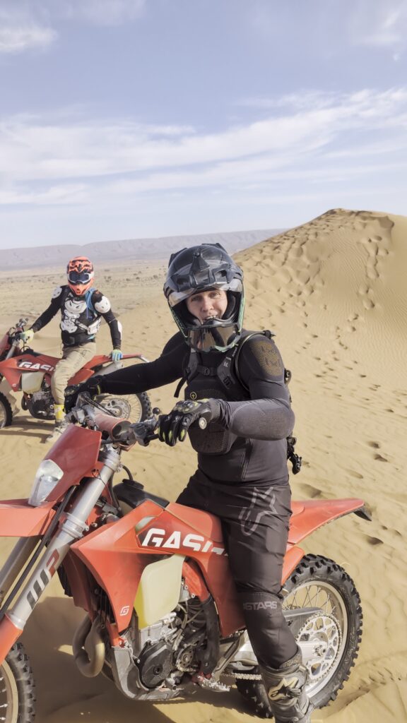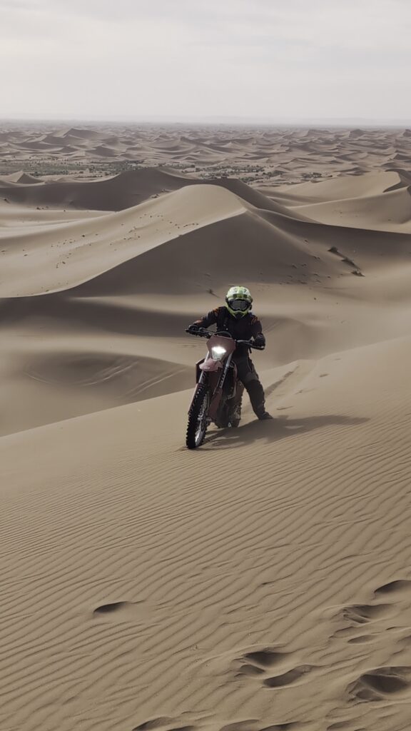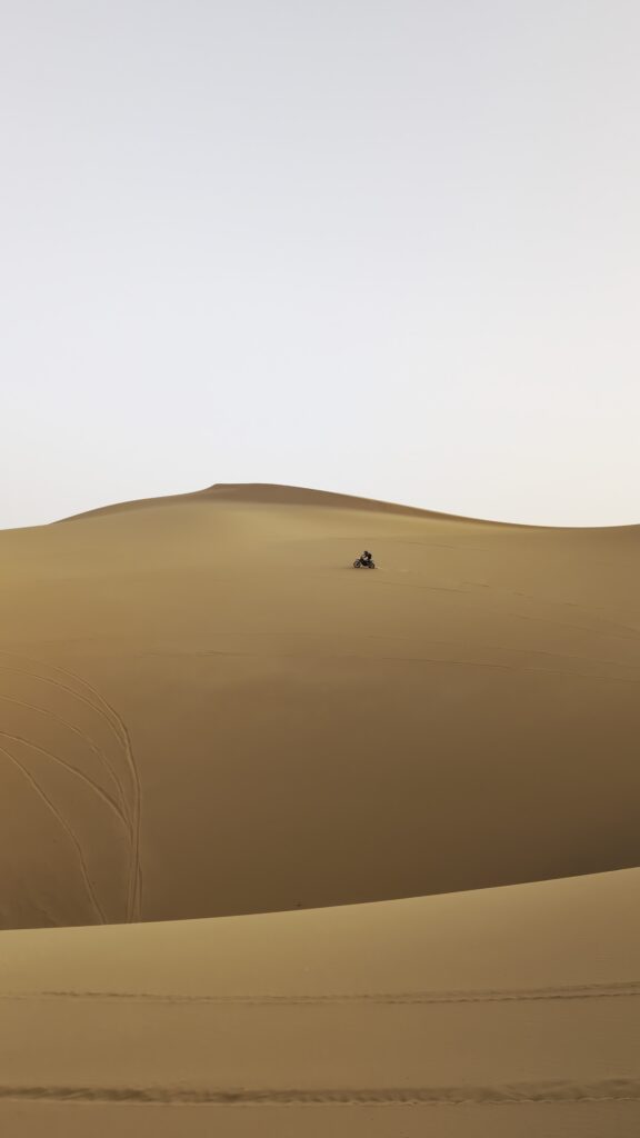 Today’s ride leads into pure desert adventure. Navigate sandy trails and open hamada before reaching the immense dunes of Erg Chegaga—the second largest dune sea in Morocco. Spend the evening in a dune-side camp, sharing stories by the fire under a canopy of brilliant stars.